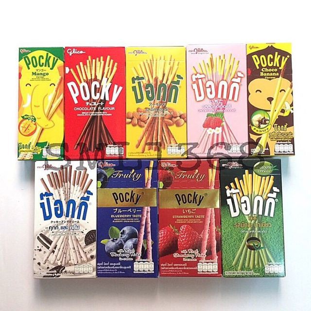 Không cần đến hẳn chợ buôn Thái Lan, ngay trong các siêu thị Big C tại Thái thì giá của em này đã cực rẻ rồi. Chỉ từ 12.000 đồng, mua càng nhiều càng rẻ thì bạn đã có thể mang em này từ Thái về Việt Nam và bán với giá 25.000 - 30.000 đồng, cực lời phải không nào? Pocky có rất nhiều hương vị khác nhau và nổi trội là bánh chuối socola.